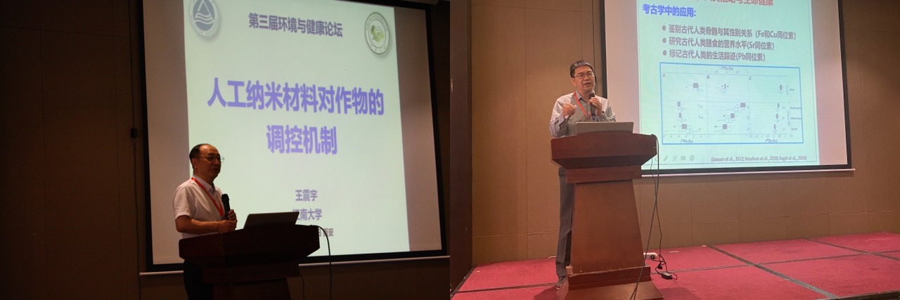 5月9日大会围绕环境与健康的主题举行了研究生论坛、青年教师学术汇报与专家研讨。在主题报告阶段,安太成教授介绍了典型VOCs大气光氧化反应机理及其区域健康风险的工作进展,桑楠教授分享了大气细颗粒物损伤靶点、毒理效应与组分作用的研究现状;刘敏教授作了题为地理学综合特征:环境地理学的挑战与展望的报告;王小萍研究员介绍了红旗再上千山雪—青藏高原环境质量与生态安全的思考;马奇英教授介绍了食品中砷铅镉的人体生物有效性及健康风险;王震宇教授深入讲解了人工纳米材料对作物的调控机制;陈玖斌教授全面介绍了金属稳定同位素在环境健康中的应用等各位专家报告。随后,安太成教授为获得研究生论坛报告一等奖、二等奖和优秀奖的同学颁发证书。