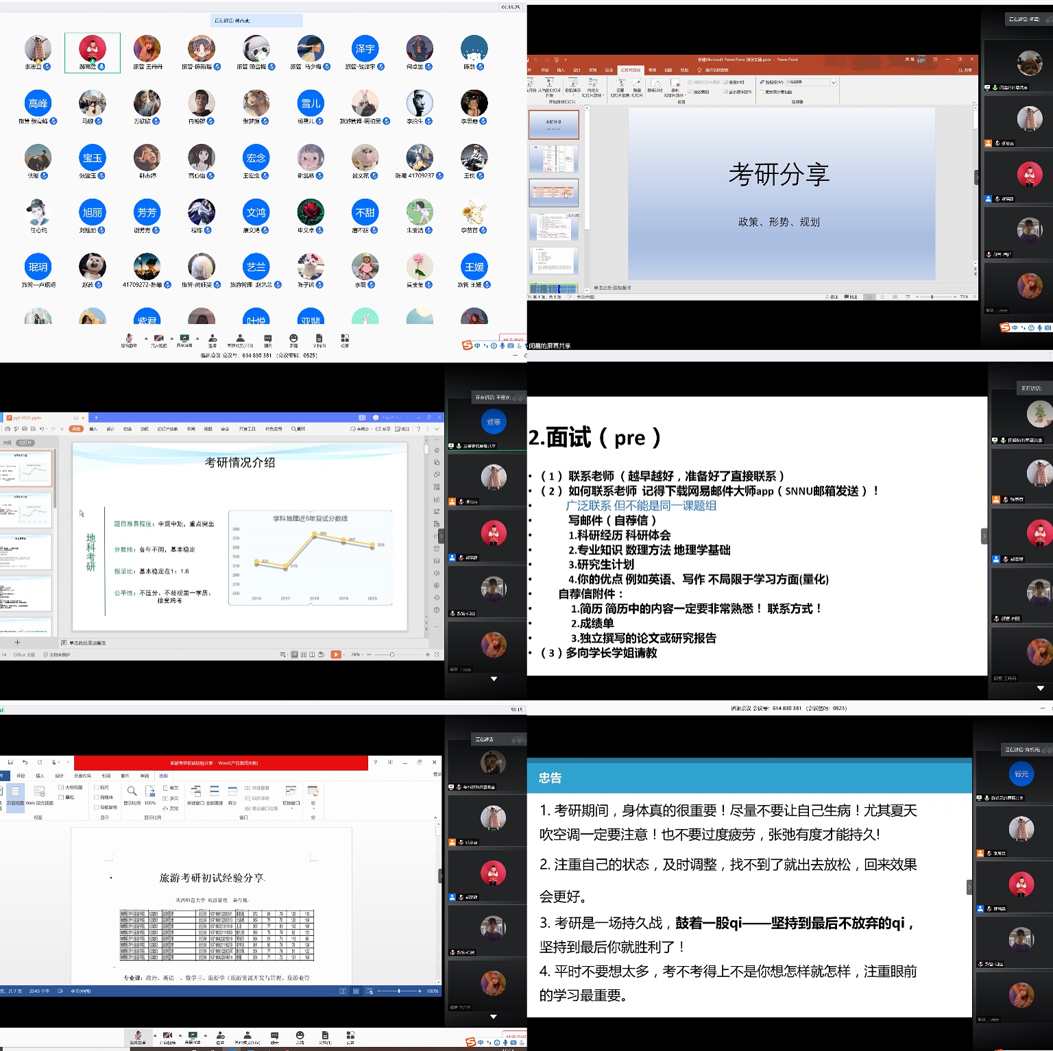 学科教学(地理)专业,她从笔试的试题类型、逻辑框架、参考书目、学习计划等方面为同学们提供复习指导。陈铄元同学今年以优异的成绩考取中科院地环所,她谈到,考研最重要的就是控制自己的节奏,要保证平稳的心态和良好的精神状态,同时她分享了几个高效复习的APP软件。姜有根同学今年考取了91九色