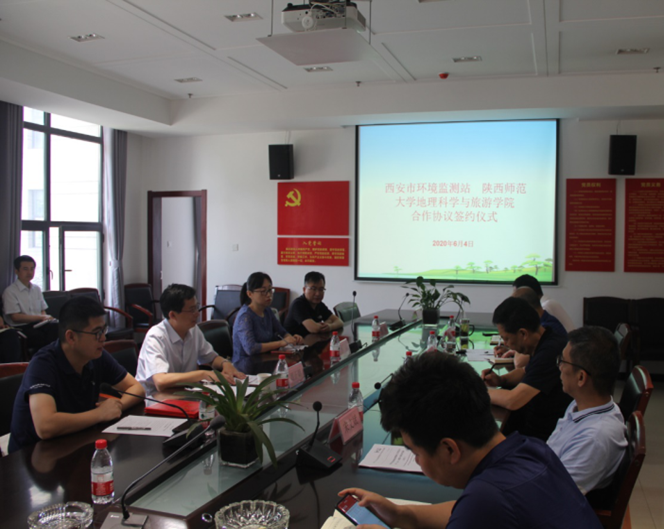 6月4日,地理科学与旅游学院院长周正朝、副院长李晶、环境科学系邵天杰、肖舜等一行4人赴西安市环境监测站开展校企合作,西安市环境监测站站长赵林社、副站长孙玉琪、宋文斌、周华以及各科室主任等参加了座谈会,就环境科学与工程专业人才培养实践实习基地、双联共建支部、科研项目申报、环境专题讲座等方面开展合作交流。