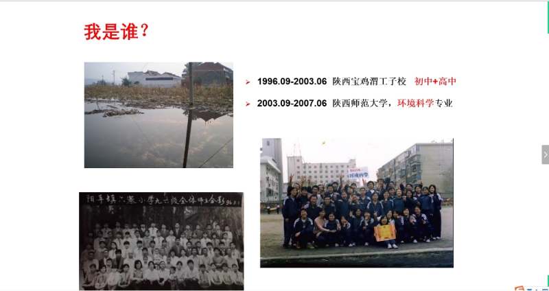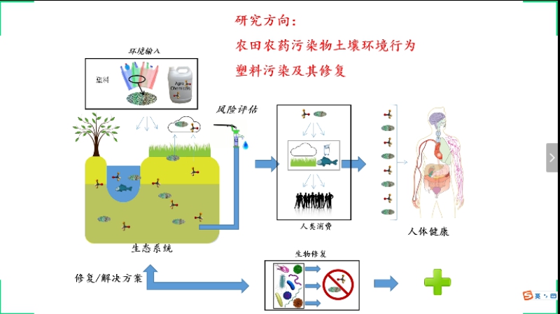 杨晓梅副教授首先回顾了自己在师大环境专业学习的一些趣事,从“我是谁”出发介绍了自己的基本情况,从大学期间的“彷徨与启蒙”阐述了爱好与专业的关系,从纠结到目标的确立。接着结合自己的研究生经历,对自己从事的碳汇、碳储量、碳排放以及IPCC-中国贡献等方面做了介绍,在学习过程中不断发现问题,一直到博士和博士后研究期间最终确定自己的研究方向为农田农药污染物土壤环境行为、塑料污染及其修复。