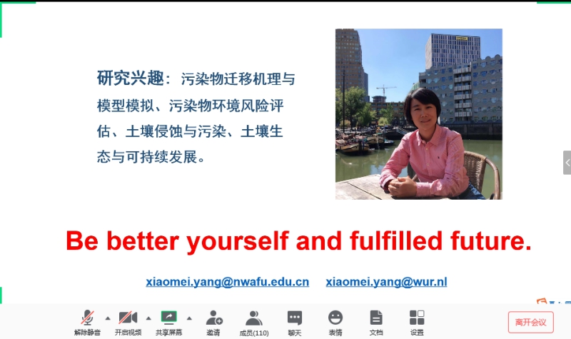 师生作了题为《Be Better》的报告会,讲座由环境科学系主任王利军主持,学院教师及研究生共110余人参加了线上讲座。