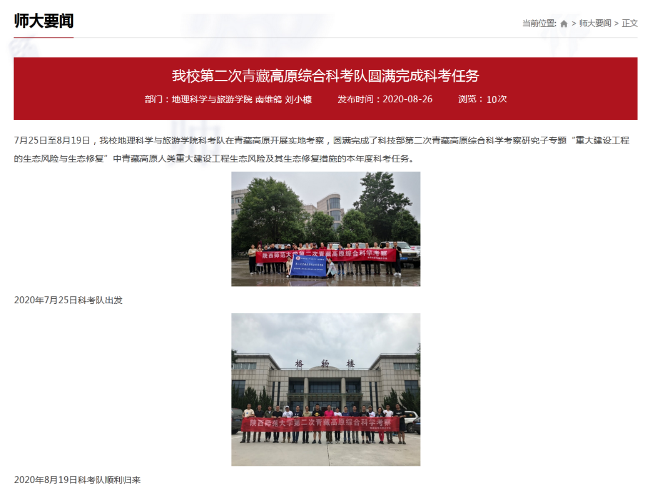 师生野外考察太白山 助力秦岭生态环境保护