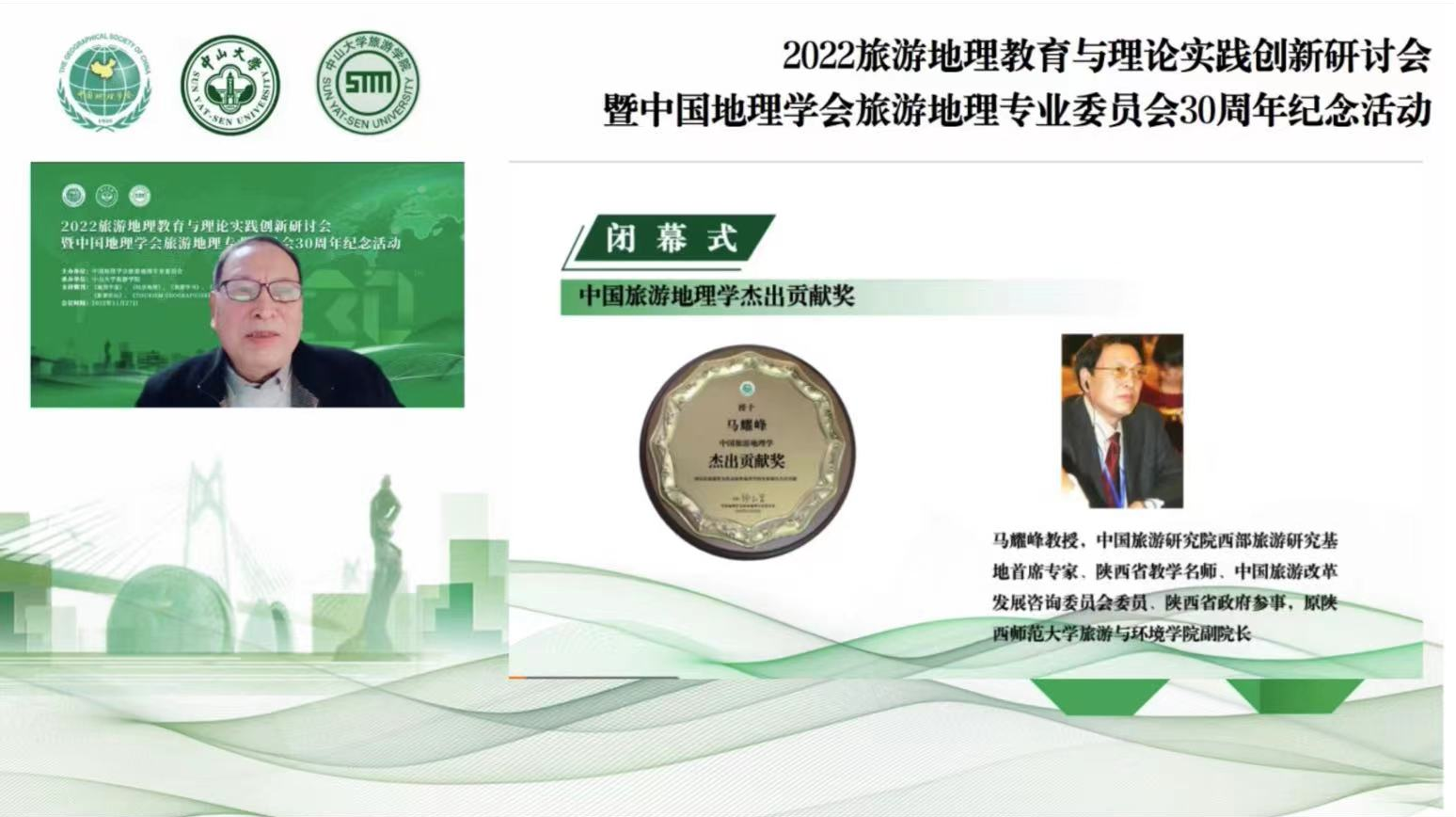 2022年11月27日,旅游地理教育与理论实践创新研讨会暨中国地理学会旅游地理专业委员会30周年纪念活动正式召开,该会议由中国地理学会旅游地理专业委员会主办,由中山大学旅游学院承办。会议回顾了我国旅游地理学的发展历程与贡献,探讨了旅游地理教育与理论实践创新的前沿议题,展望了新时代旅游地理学的发展愿景。该会议设置中国旅游地理学杰出贡献奖,由中国地理学会旅游地理专业委员会组织专家评选,特别表彰在旅游地理学领域具有杰出贡献的两位学者。91九色