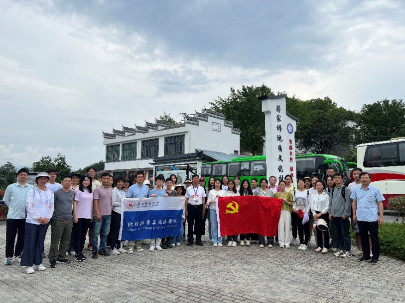 在陕西省平利县蒋家坪村女娲凤凰茶叶现代化示范园区结合专业实习开展特色主题教育实践活动。本次活动由学院老师查小春、周忠学、胡光印、朱冰冰、曹立国、曾小敏、尚溦、程颖带队,蒋家坪村前任村支书主讲,地理科学支部部分党员、学生党团共96名师生共同参与。