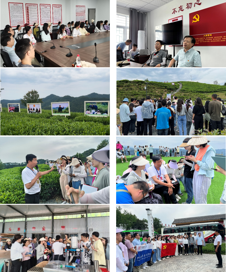 本次活动中,在蒋家坪村前任村支书的带领下,全体师生参观了蒋家坪村女娲凤凰茶叶现代示范园,边走边聆听前任村支书讲述习近平总书记考察园区时与茶农们亲切交谈的情景,深入探讨并理解习近平总书记提出的“人不负青山、青山定不负人”、“绿水青山就是金山银山”的发展理念。随后,师生跟随前任村支书走进茶厂,了解茶叶的制作工艺;并对蒋家坪村的自然区域概况、民生状况、民情民意、土地流转、产业发展模式、茶旅文化对当地村民生活的影响进行实地调研。