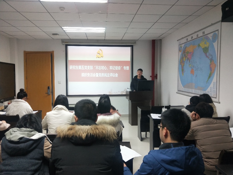 根据学校的统一部署和学院的要求,12月6日晚,研究生第五支部在文汇楼B段407教室开展“不忘初心、牢记使命”专题民主生活会暨2019年度党员民主评议会。支部全体党员参会,会议由支部书记杨紫晨主持。