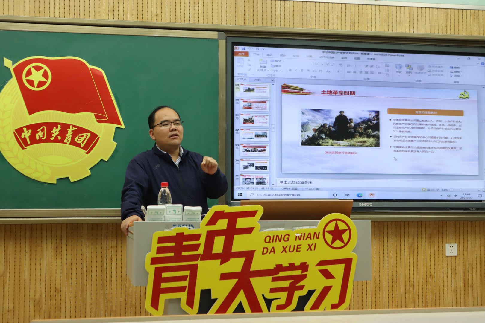 为了营造“全院师生学党史”的浓厚氛围,在理论学习阶段,本次大骨干采取学工集体备课,师生共同的学习的方式,从4月2日至4月15日,学院党委副书记郝高建,团委书记王蓓蓓,辅导员张思豆、刘舒天、白克阿力·艾山、张钰超等六位老师,以《党史必修课》、《论中国共产党历史》为基本学习教材,通过梳理历史脉络、重现历史事件、凝练授课提纲等环节,以“深度备课”推动“深度学习”,切实发挥辅导员的“领学、促学”作用。目前已完成“红船起航 敢为人先”、“风云变幻 开天辟地”、“星火燎原 改天换地”、“当家做主 奋发蓄力”“曲折探索 实践真谛”、“改革春来丰功伟绩”等六个专题的学习。