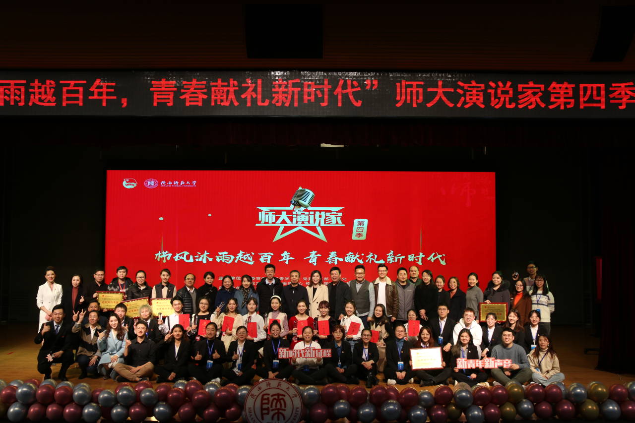 11月26日晚,由党委宣传部、党委学工部、党委研工部、教务处、毕业生就业指导服务中心、校团委、国家大学生素质文化基地主办,我院团委承办的“师大演说家”第四季暨“栉风沐雨越百年 青春献礼新时代”主题演讲比赛决赛在长安校区新勇活动中心学生剧场举行。