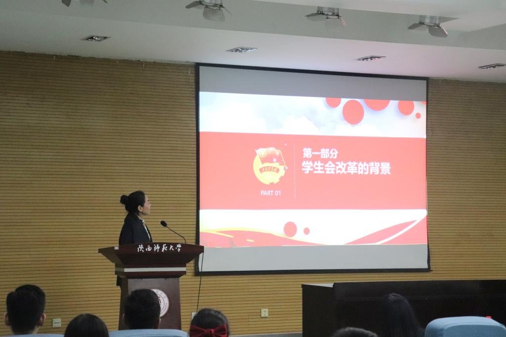 成立大会之后,团委书记王蓓蓓老师给大家带来了题为《坚持从严治“会”,回归服务宗旨》的精彩团课。她从学生会改革的背景、学生会的职能定位、学生会的“十条回归”以及学生会新要求、新作为等四个方面,通过经典案例,结合学院团学工作的实际,与在座的全体同学分享了有关学生会工作的思路和做法,她希望这一届学生会既要又红又专,也要色彩斑斓,既要细致入微,也要广阔豁达,既要塑造个人,更要成就集体。