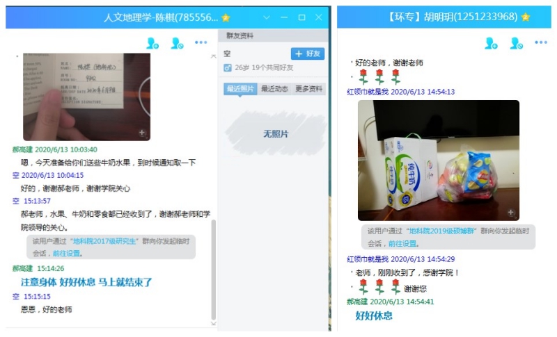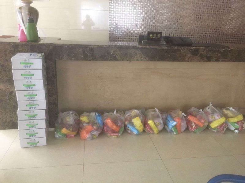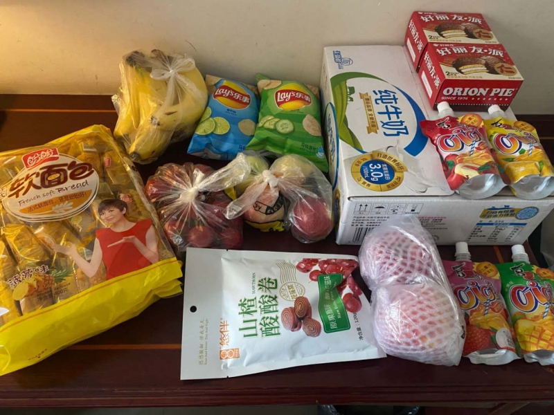 疫情防控集中隔离点启夏苑对进行隔离的9名本科生、研究生进行慰问,并为隔离学生送去水果、牛奶等慰问品。