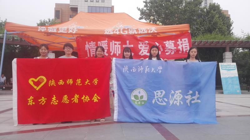 2017年5月13日上午8时,东方志愿者协会与思源社两大社团在陕西师范大学长安校区阳光苑举办的捐衣活动正式开始。