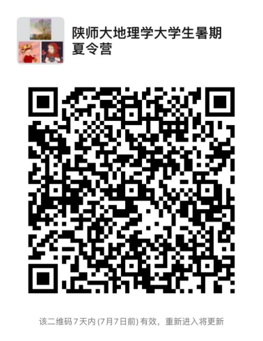 请拟录取同学于2022年7月3日前扫二维码加入微信群“陕师大地理学大学生暑期夏令营”,没有发附件材料的同学补充发送附件材料,包括但不限于电子版论文、录用证明等,逾期视为放弃资格。