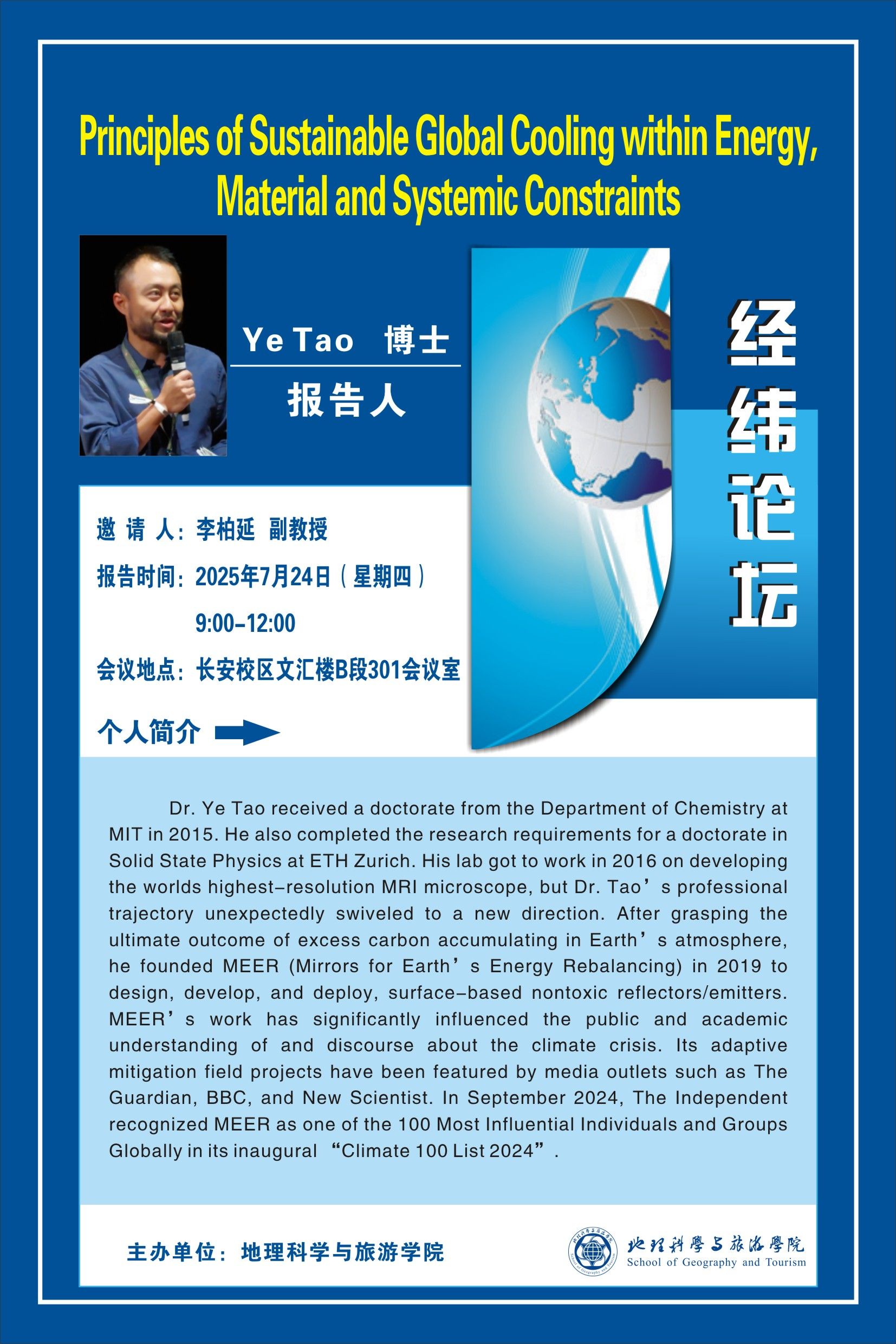 经纬论坛--Principles of Sustainable Global Cooling within Energy, Material and Systemic Constraints